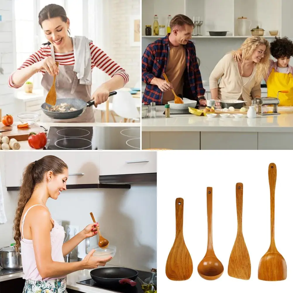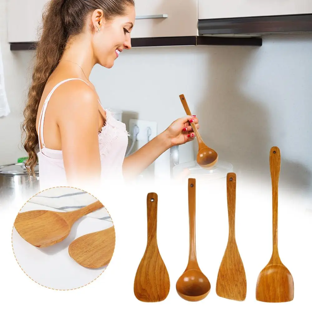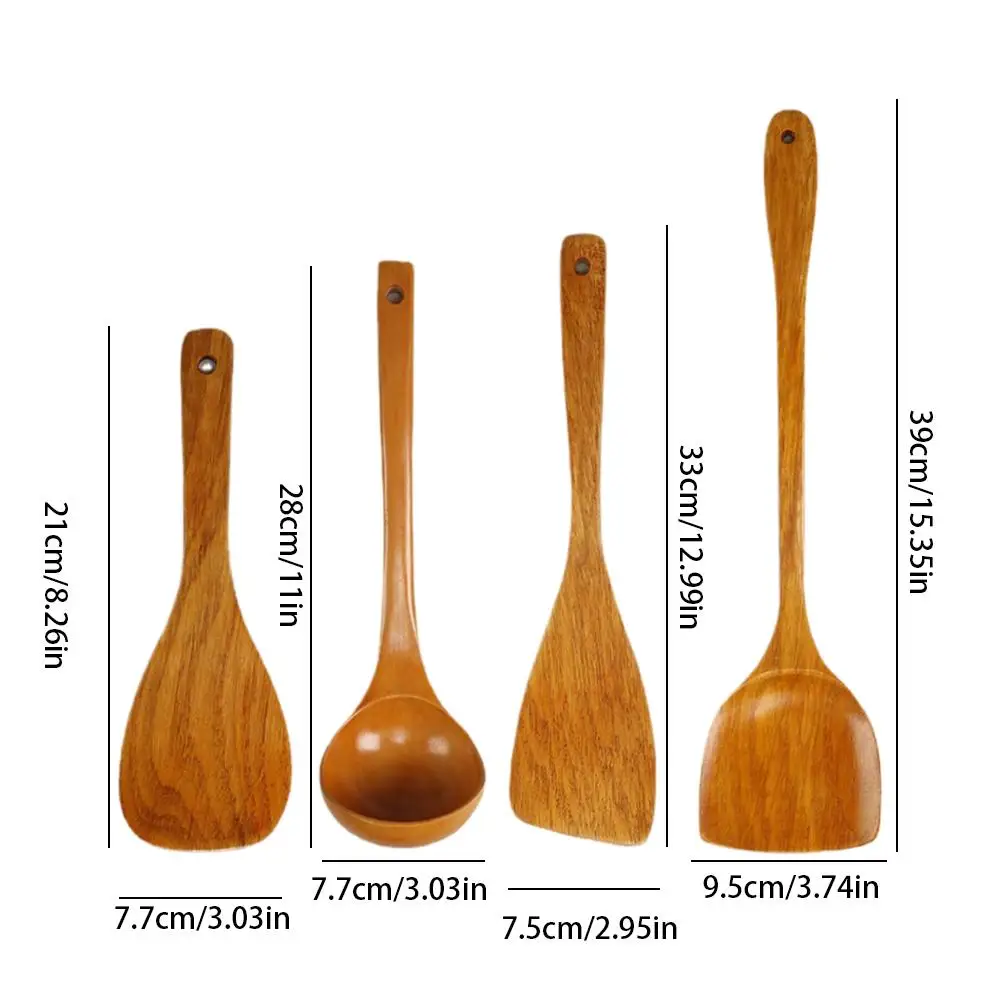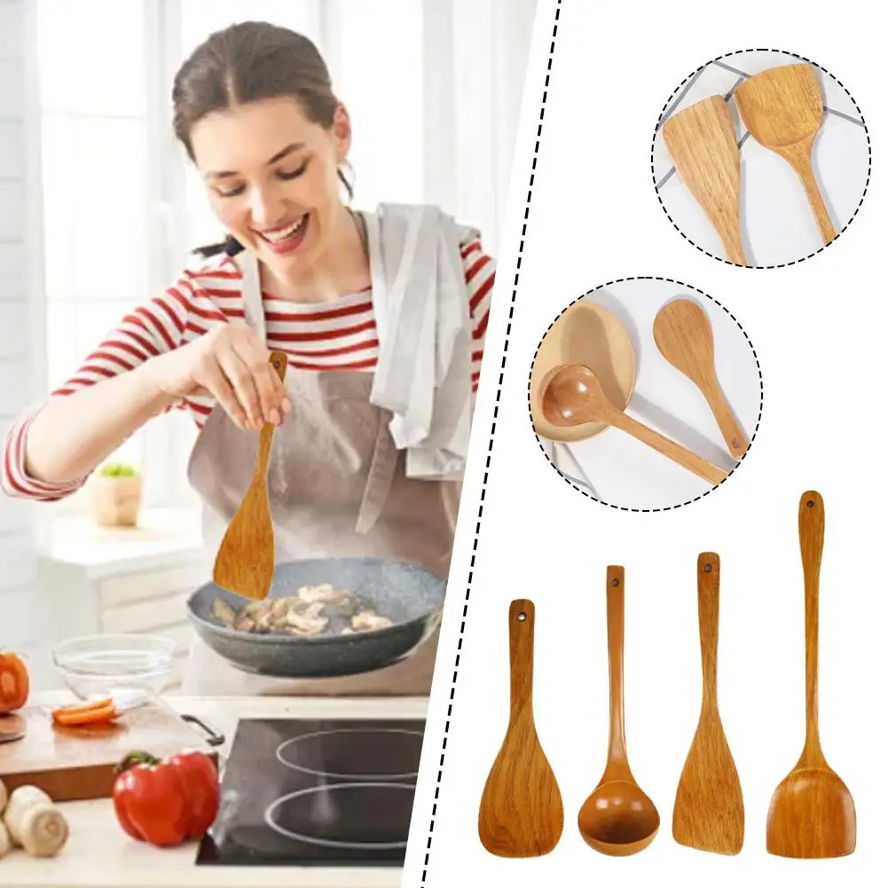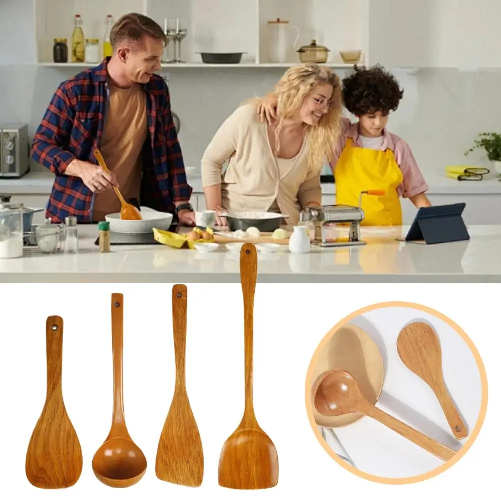 Wooden Kitchen Utensil Set Special High Temperature Resistant Household Long-Handled No Paint No Wax Kitchen Tools